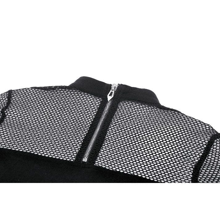 Women's Punk Cut-out Mesh Long Sleeved Blouse