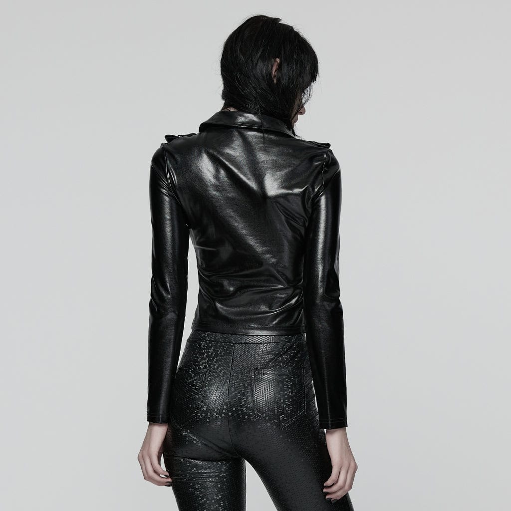 The slim-fitting cropped cut outlines the body curves. Combined with punk elements, it showcases a neat yet bold punk aura.