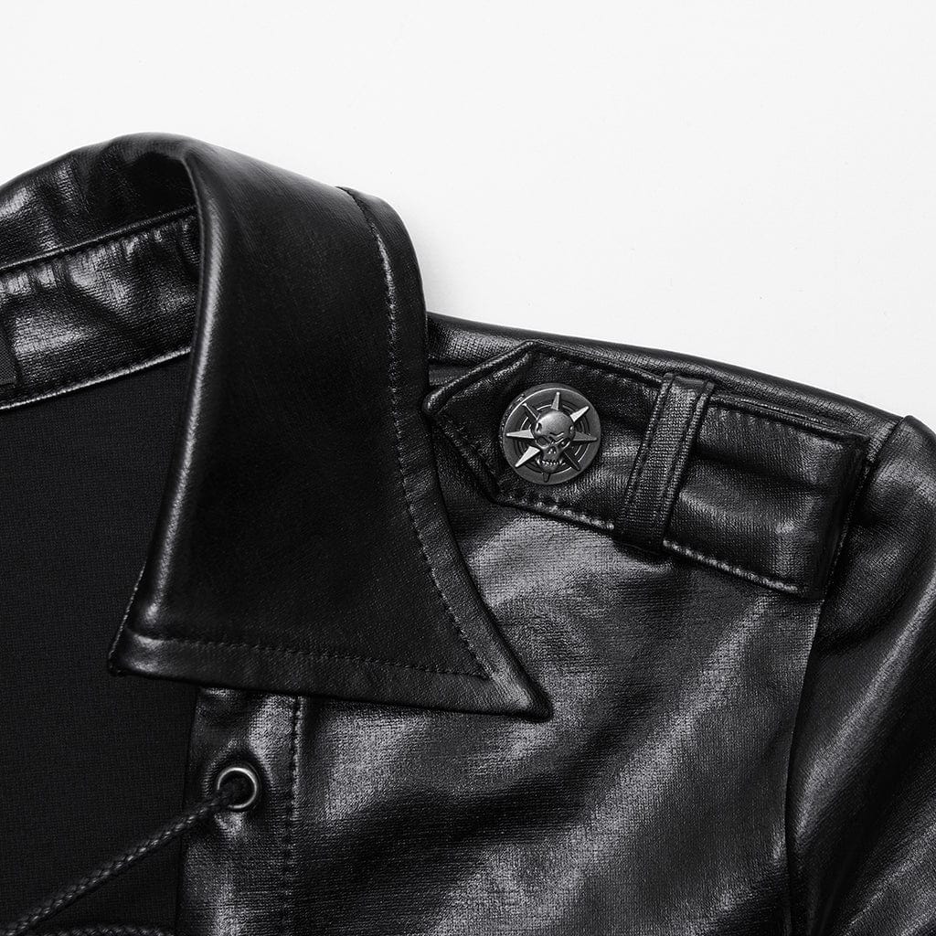 The three-dimensional chest pockets integrate with the overall texture of the garment. This design retains the tough style of punk while increasing practicality and adding a layered look to the outfit.