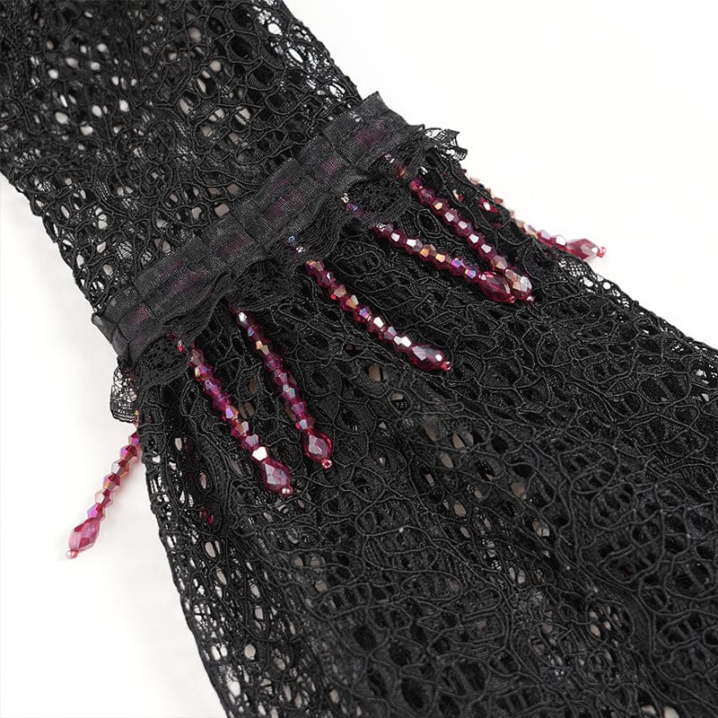 Women's Gothic Cutout Beaded Flared Sleeved Shirt Black-Red