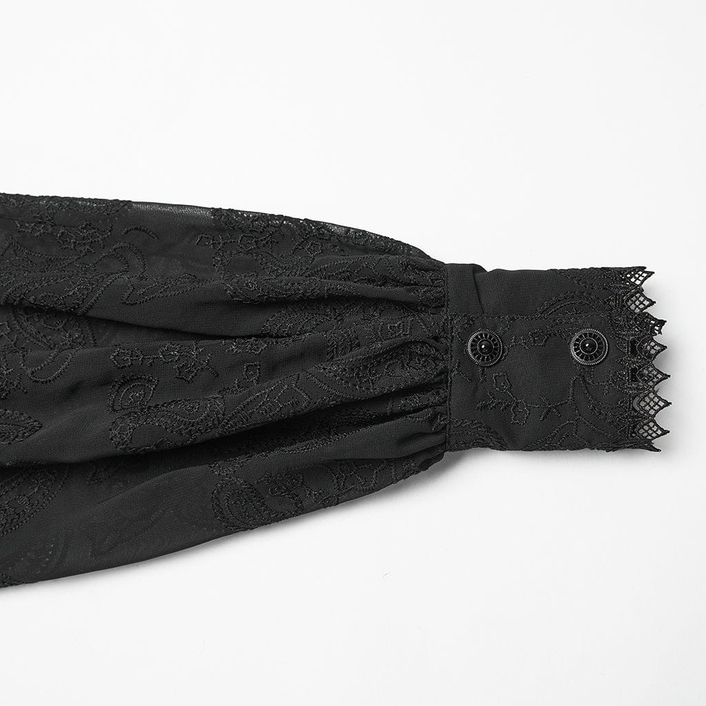 Women's Gothic Floral Embroidered Puff Sleeved Shirt