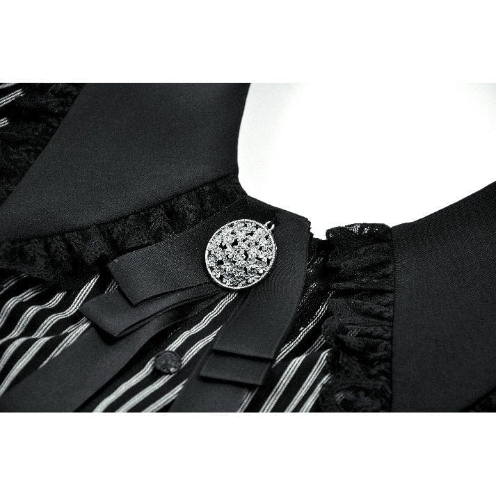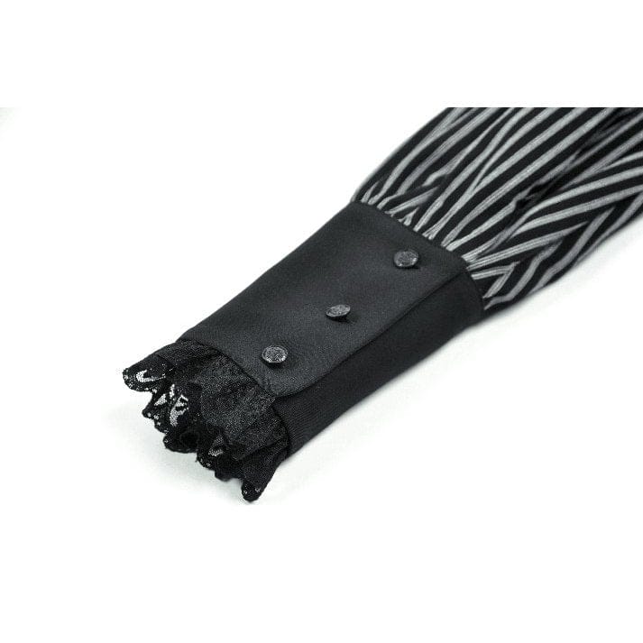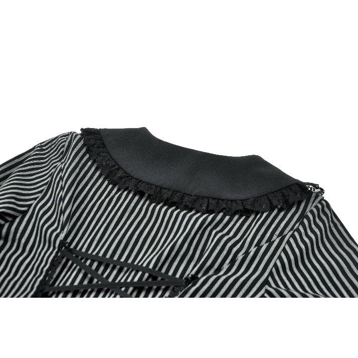 Women's Gothic Pinstripe Peter Pan Collar Long Sleeved Shirt