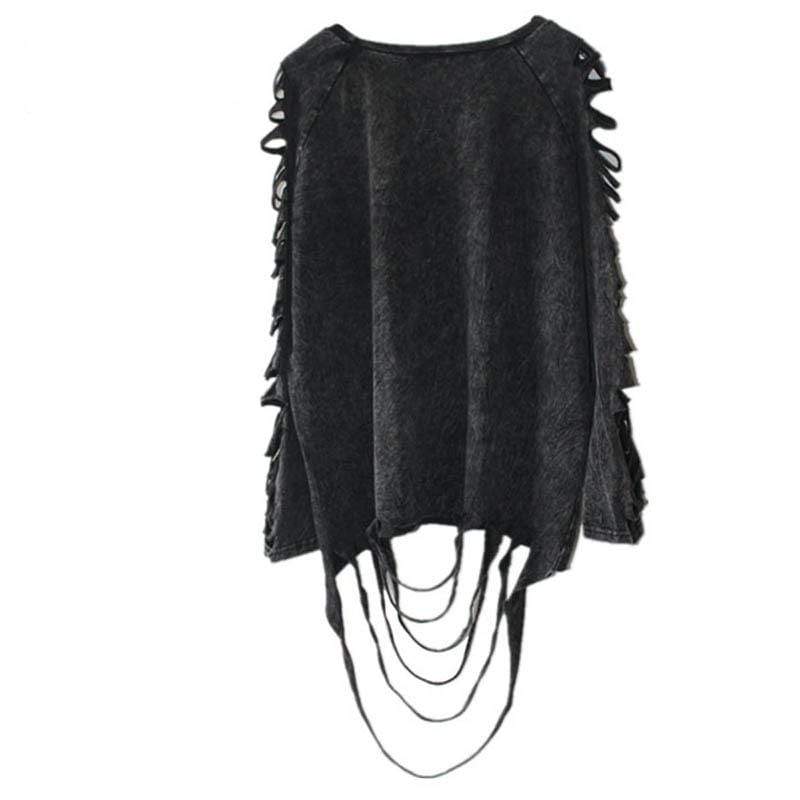 Women's Gothic Grunge Distressed Sleeveed T-shirt