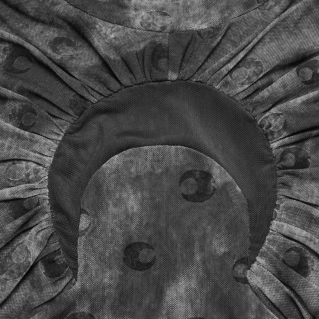 Women's Gothic Moon Printed Ruched Mesh Shirt Grey
