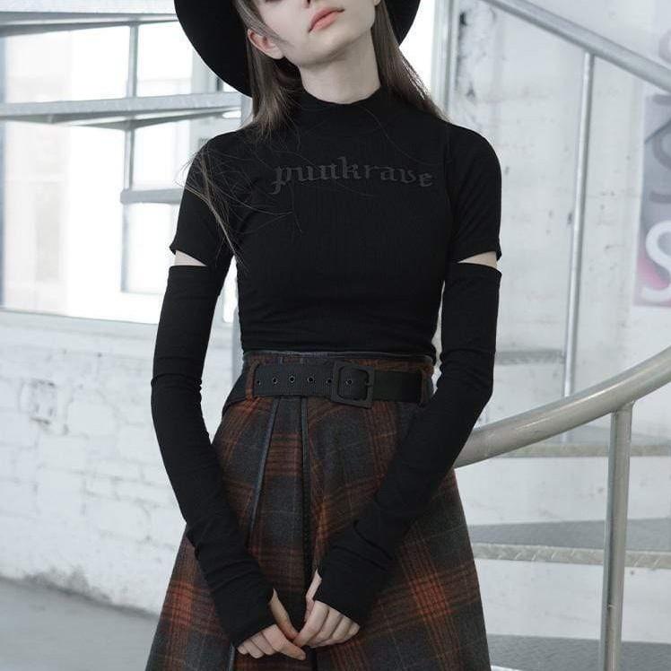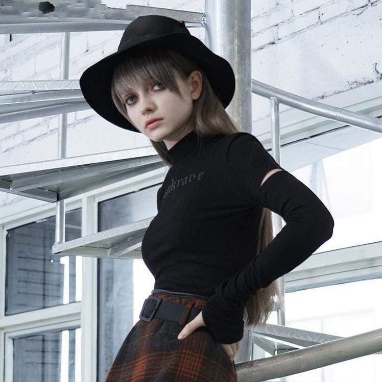 Women's Stand Colalr Long Sleeved Cutout Letters T-shirts