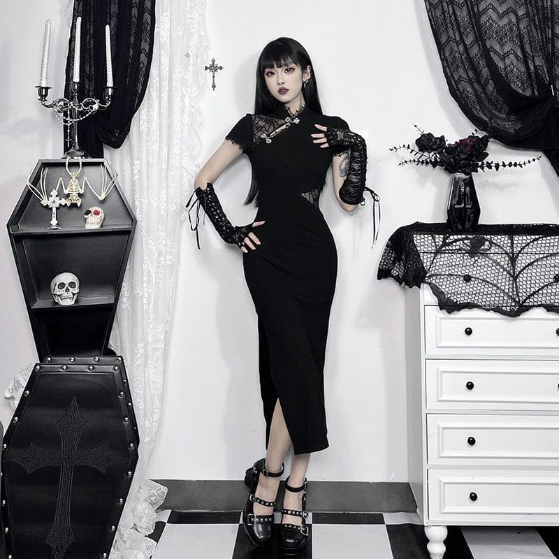 Women's Gothic Sipder Mesh Splice Split Halloween Dress