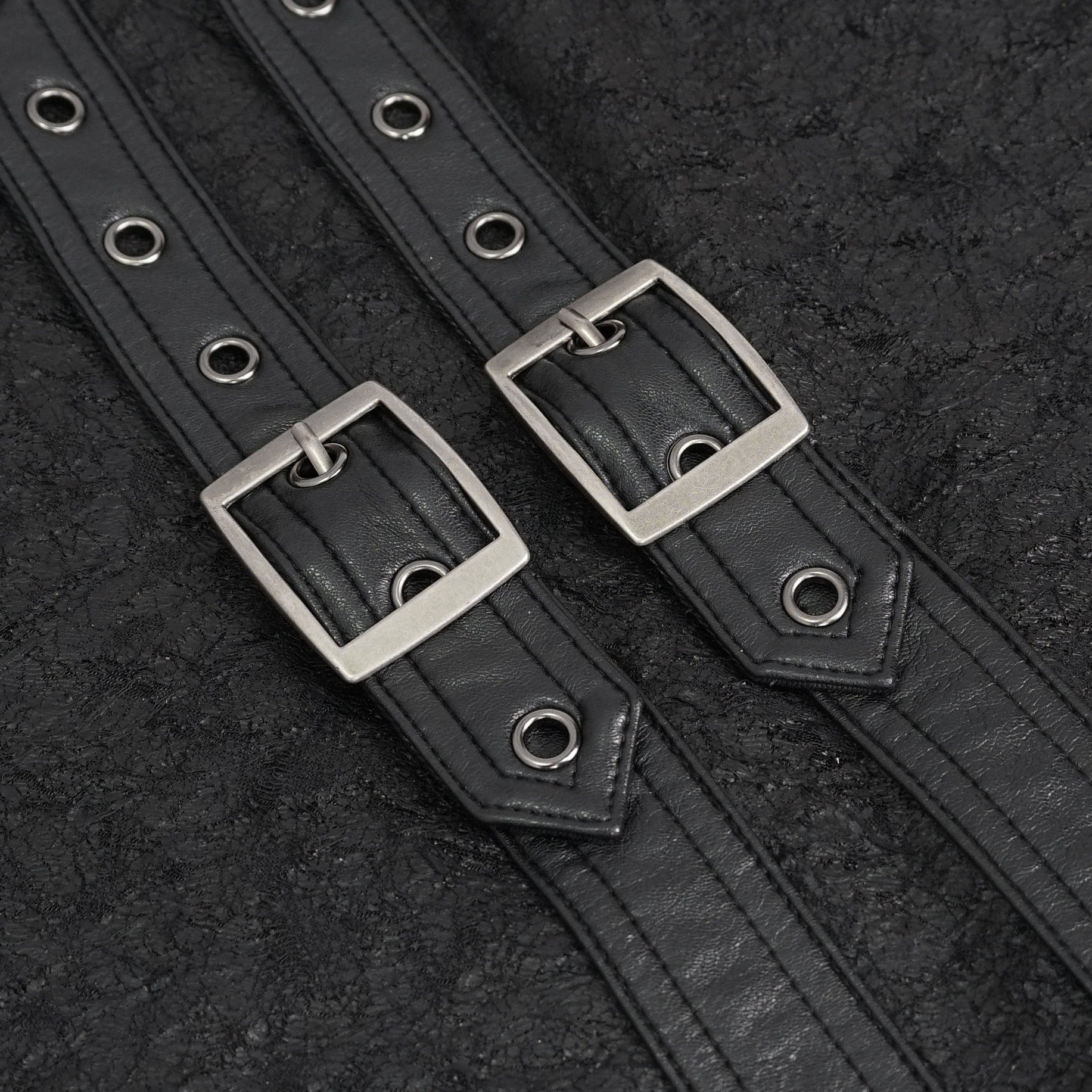 Men's Punk Buckle Splice Faux Leather T-shirt
