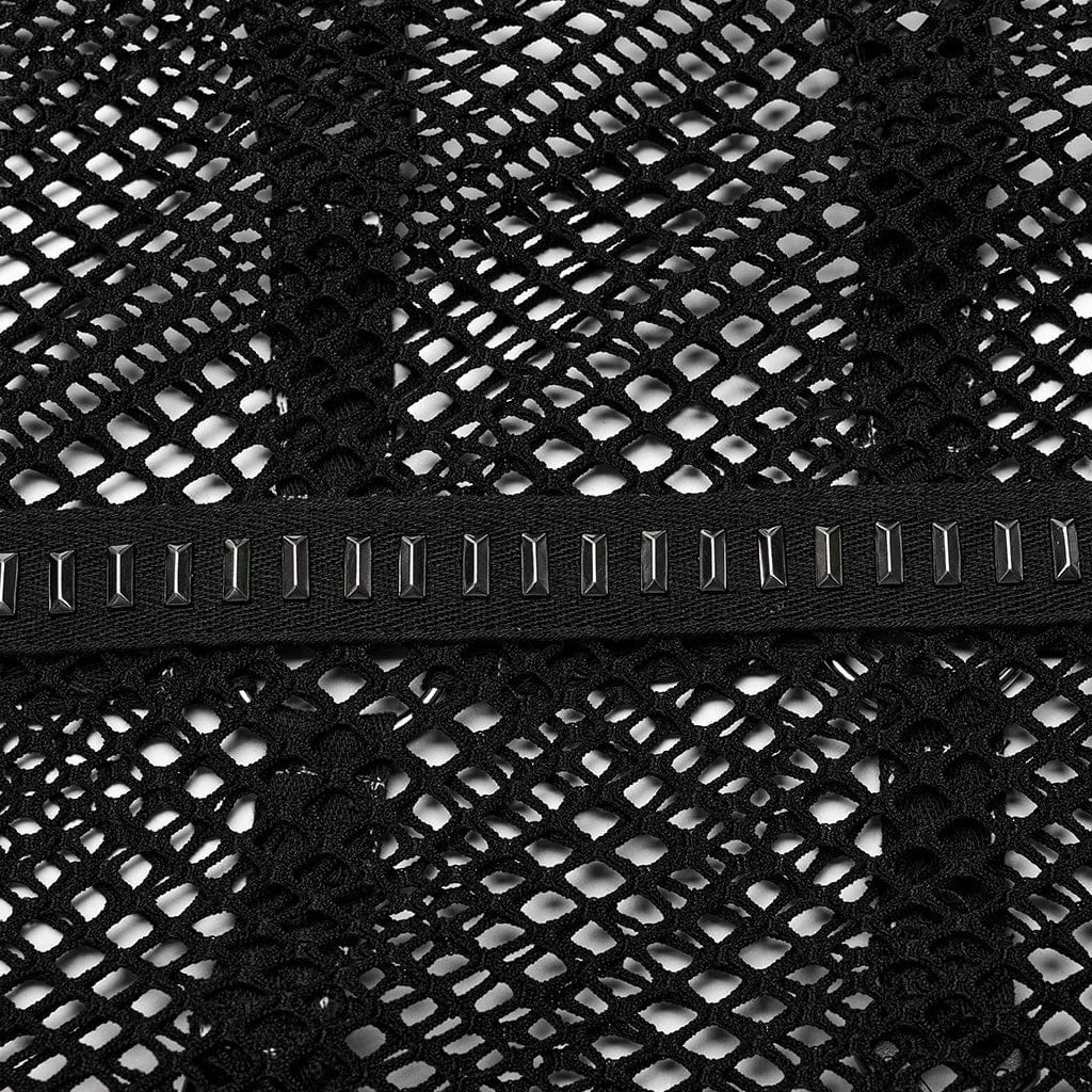 Men's Punk Rock Stand Collar Buckle Straps Mesh Tank Top