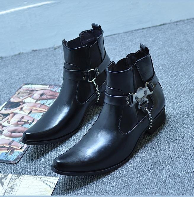 Men's Faux Leather Suede Pointed Toe Eagle Gusset Harness Ankle Boots