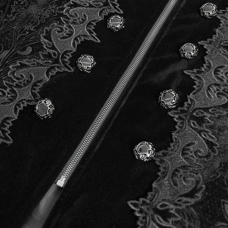 Men's Gothic Lapel Collar Embroidered Velvet Coat Black