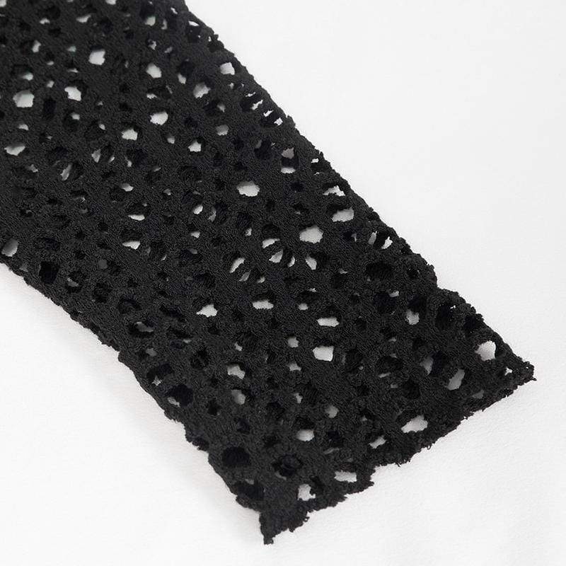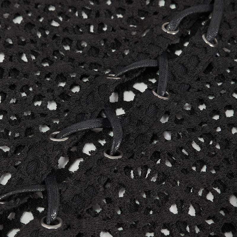Men's Gothic Strappy Irregular Mesh Shirt with Hood