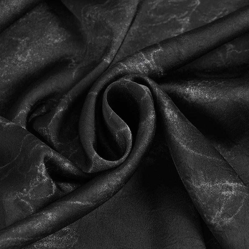 Collar and cuffs feature tonal-yet-distinct finishes against the marbled base. These small accents frame the silhouette, adding polished detail without softening the shirt's edgy core, balancing refinement and raw punk attitude.