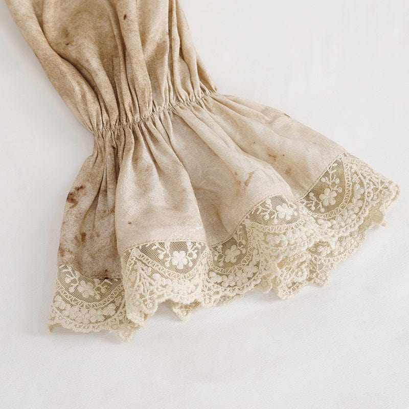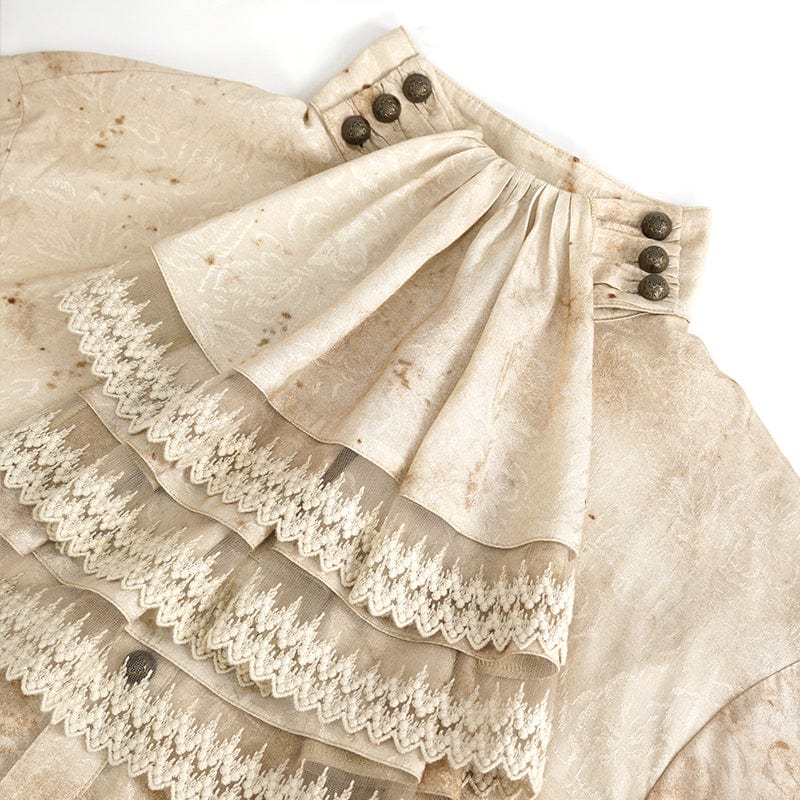 Men's Gothic Puff Sleeved Stand Collar Distressed Shirt with Necktie