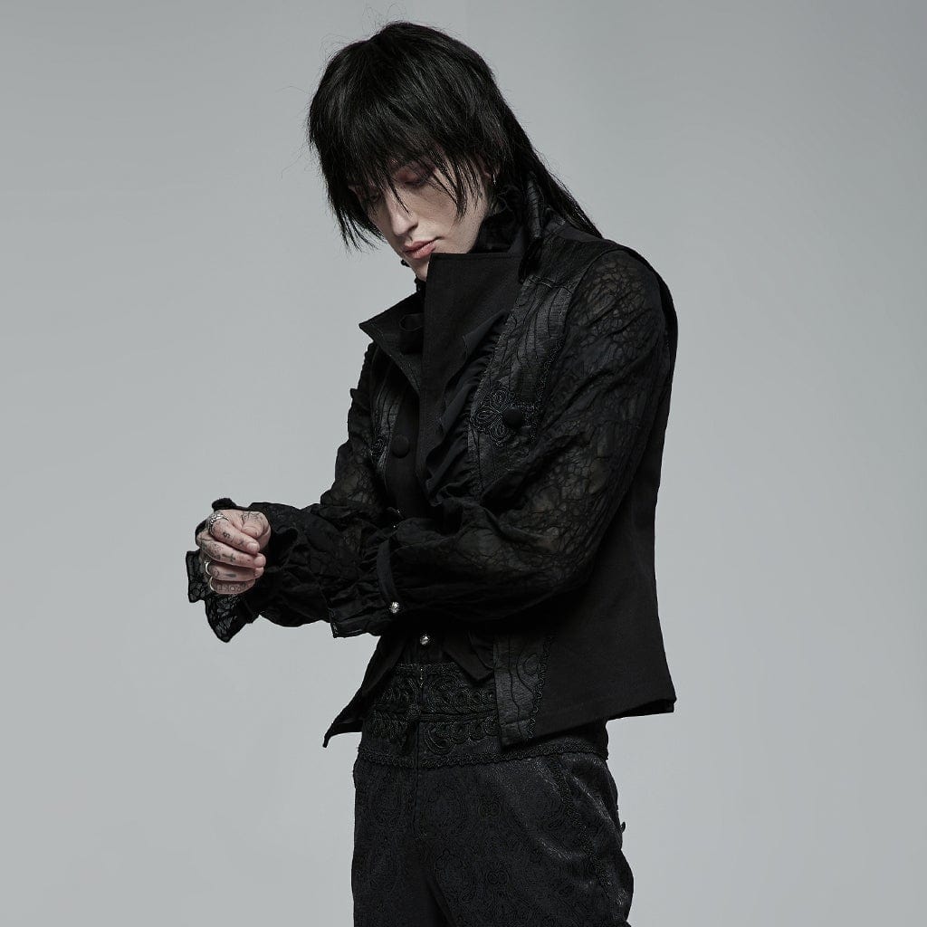 Men's Gothic Floral Embroidered Ruffled Waistcoat