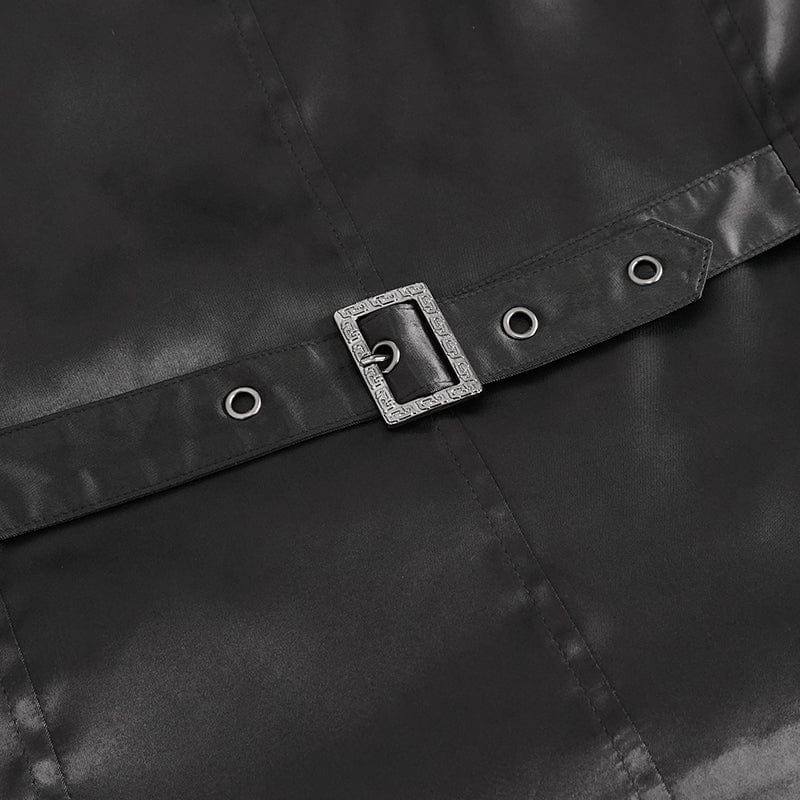 This gothic waistcoat has a contrast color. Feathers and a metal gothic architecture decorated on the collar. Embossing on front one side. Exquisite buttons for closure. A buckle on the back. No elastic fabric. Available in two colors.