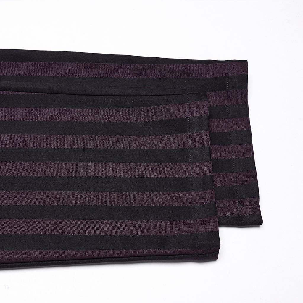 These pants feature functional pockets on the side, along with an additional sleek pocket at the back, maintaining both style and practicality. The rich striped pattern and smooth fabric provide a versatile option for both formal and casual gothic outfits. Whether paired with a tailored gothic vest or a simple dark shirt, these pants effortlessly elevate any alternative look.