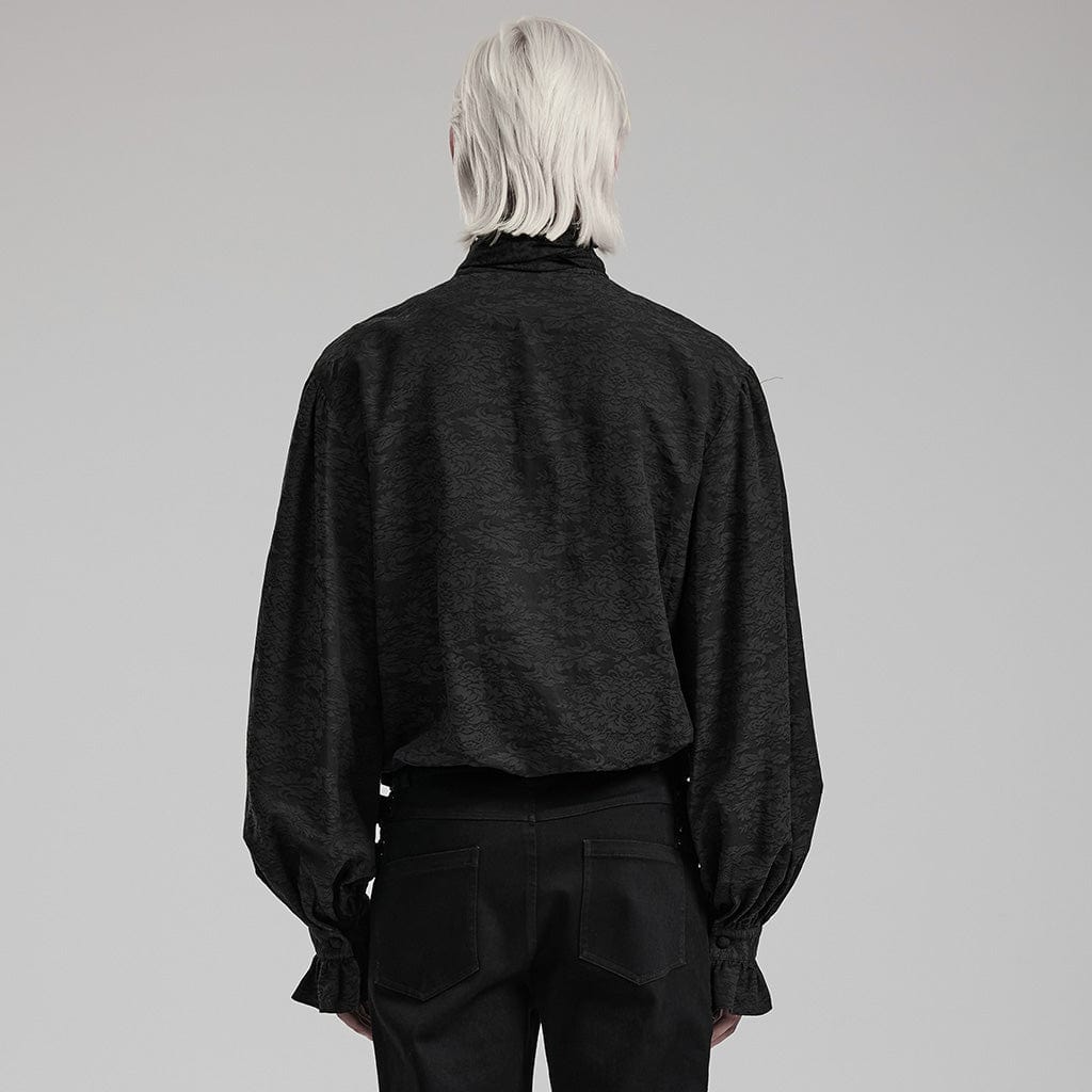 Men's Gothic Stand Collar Puff Sleeved Jacquard Shirt with Necktie