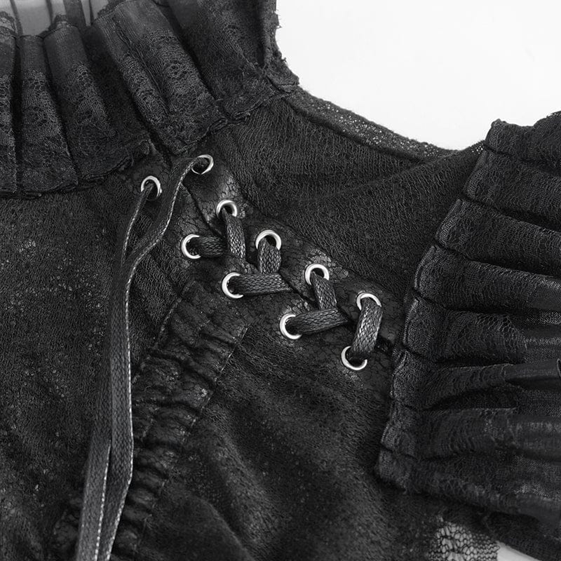 Women's Gothic Sheer Lace-Up Mesh Ruffled Top