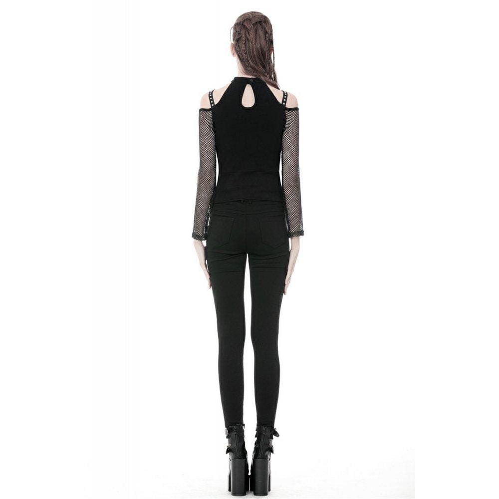 Women's Punk Lace-up Front Off-shoulder Mesh Tops