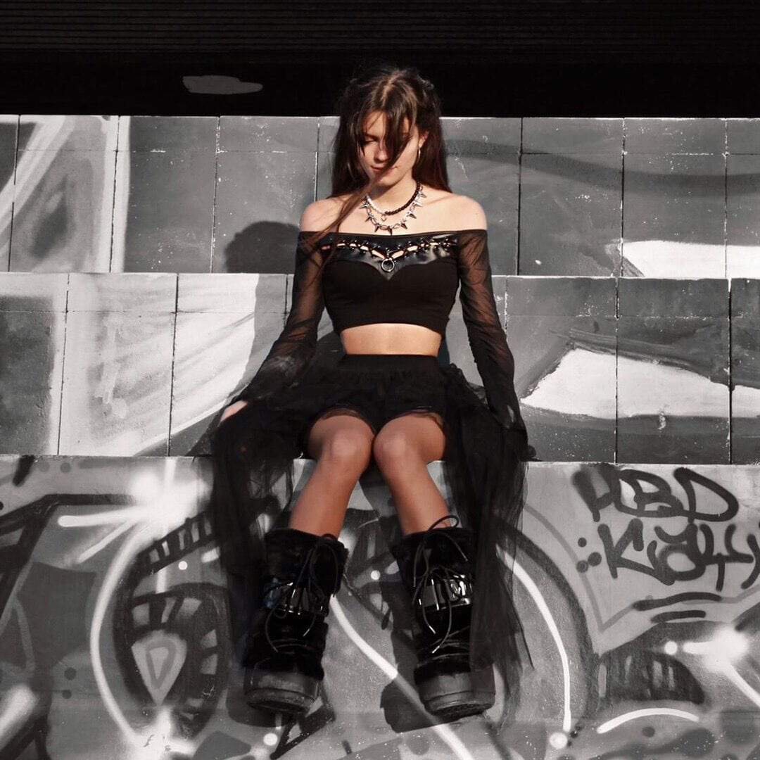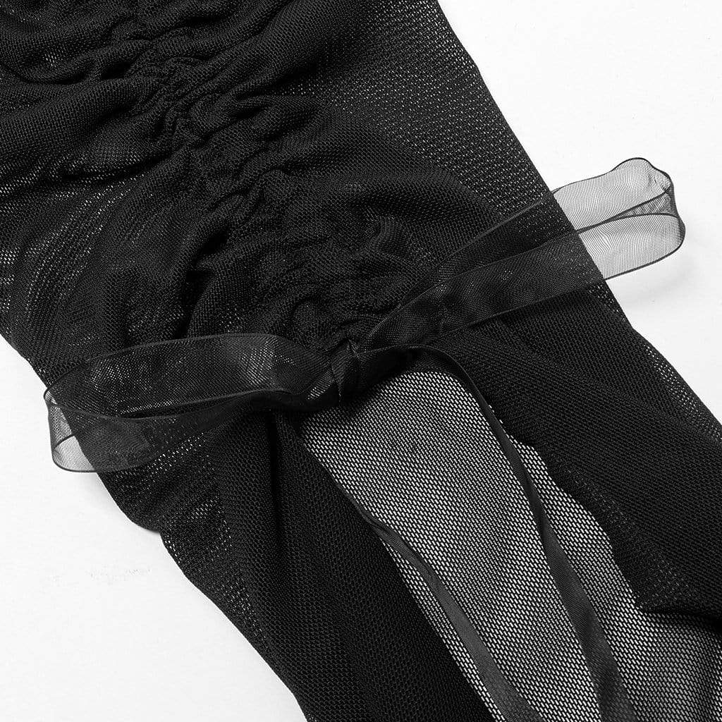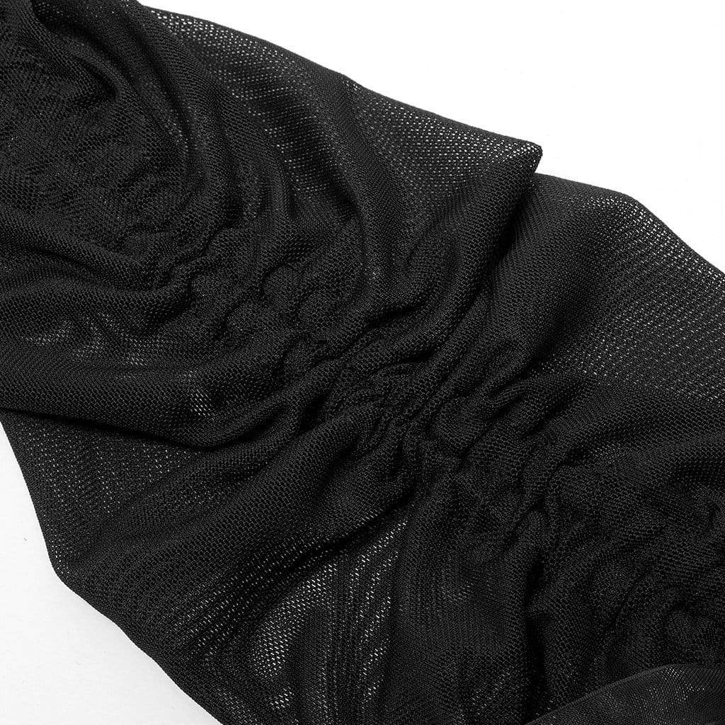 Women's Punk Off Shoulder Drawstring Mesh Top(Chain not included)