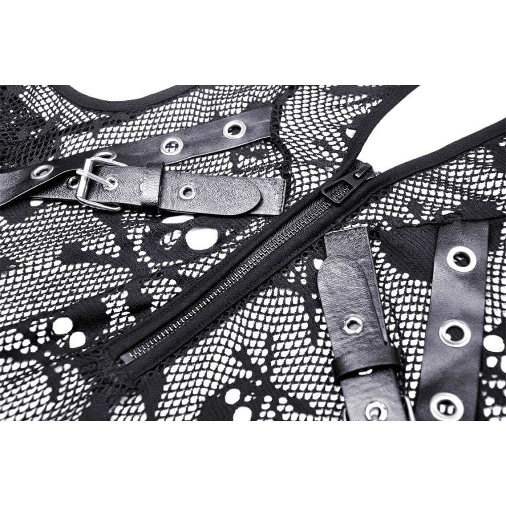 Women's Punk Off Shoulder Skull Mesh Shirt with Hood