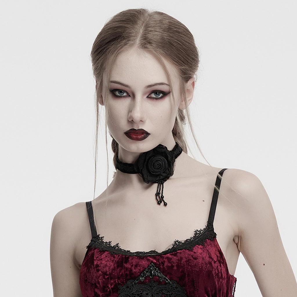 Women's Gothic Floral Embroidered Rose Velvet Choker Black