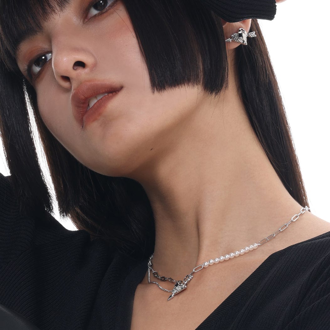 Women's Punk Pierced Arrow Heart Necklace
