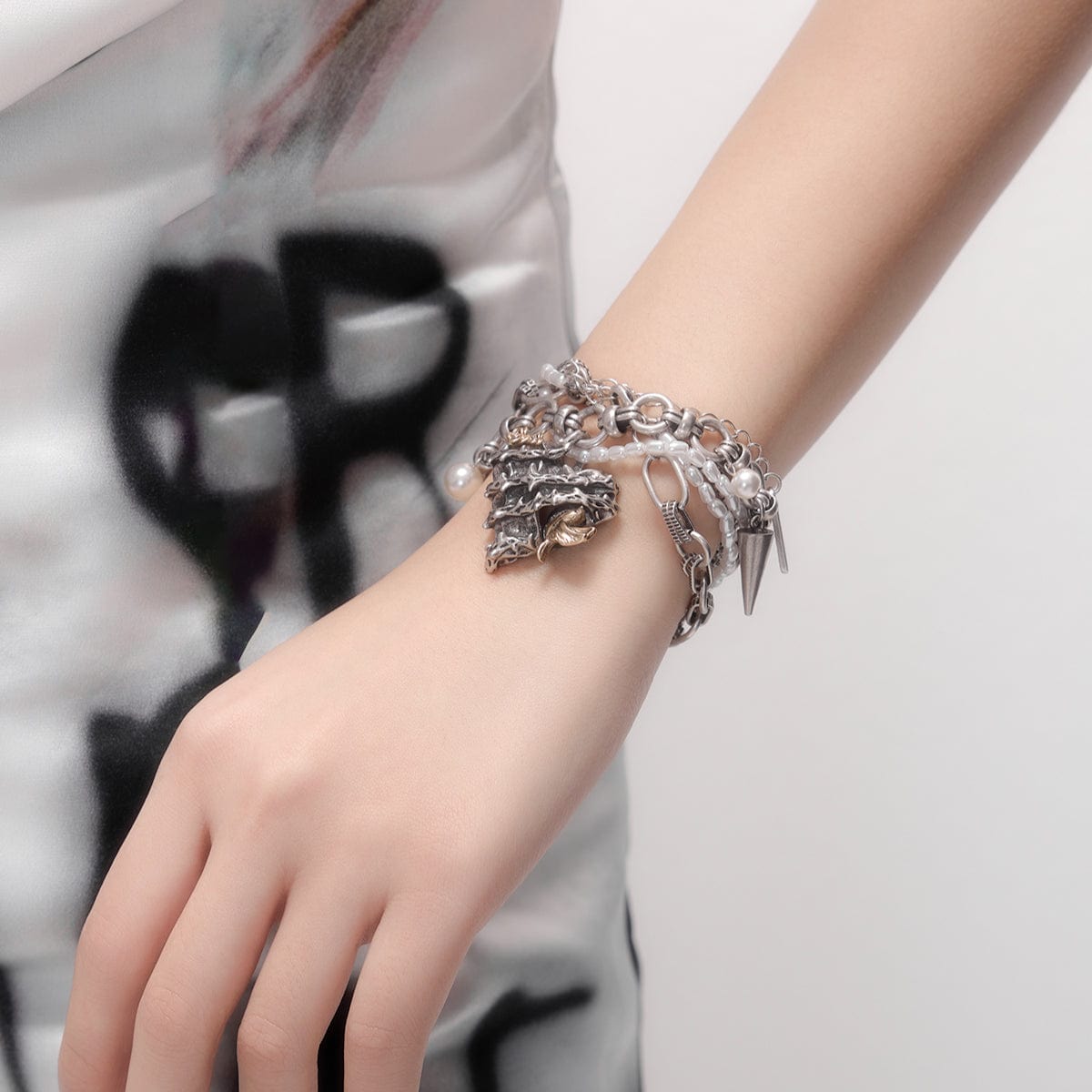 The choker features a multi-chain layer with pearls and studs, adding depth and dimension to the necklace. The combination of chains, pearls, and studs creates a layered look that adds drama and sophistication to your neckline.