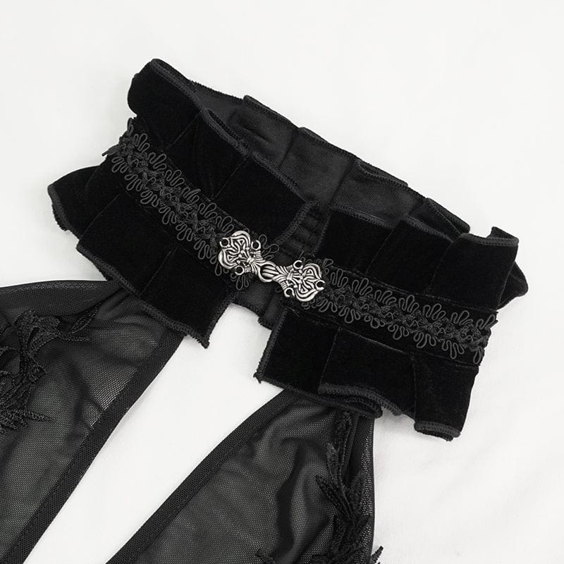Women's Gothic Floral Embroidered Halterneck Mesh Dress