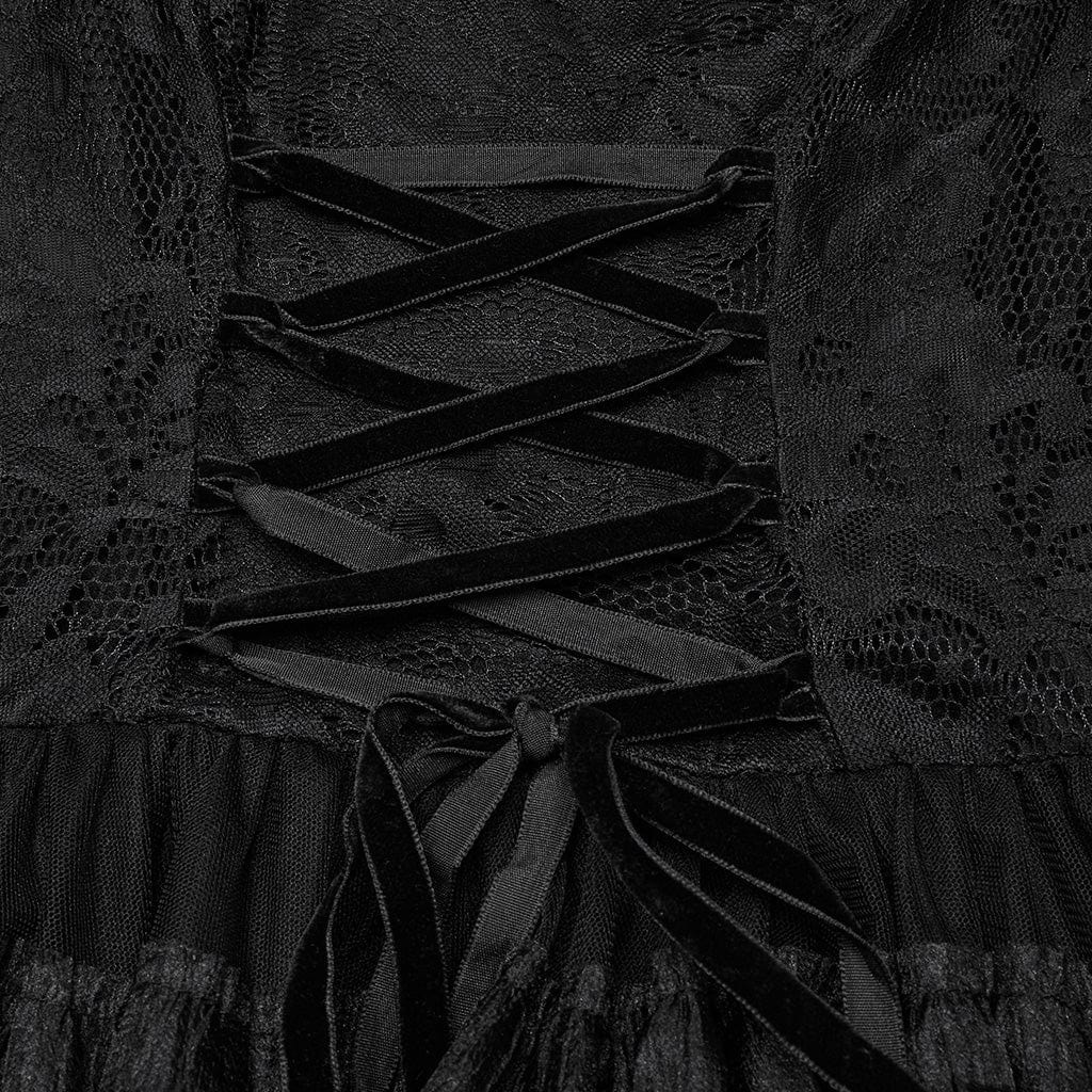 Women's Steampunk Off-the-shoulder Layered Gown Dress Black