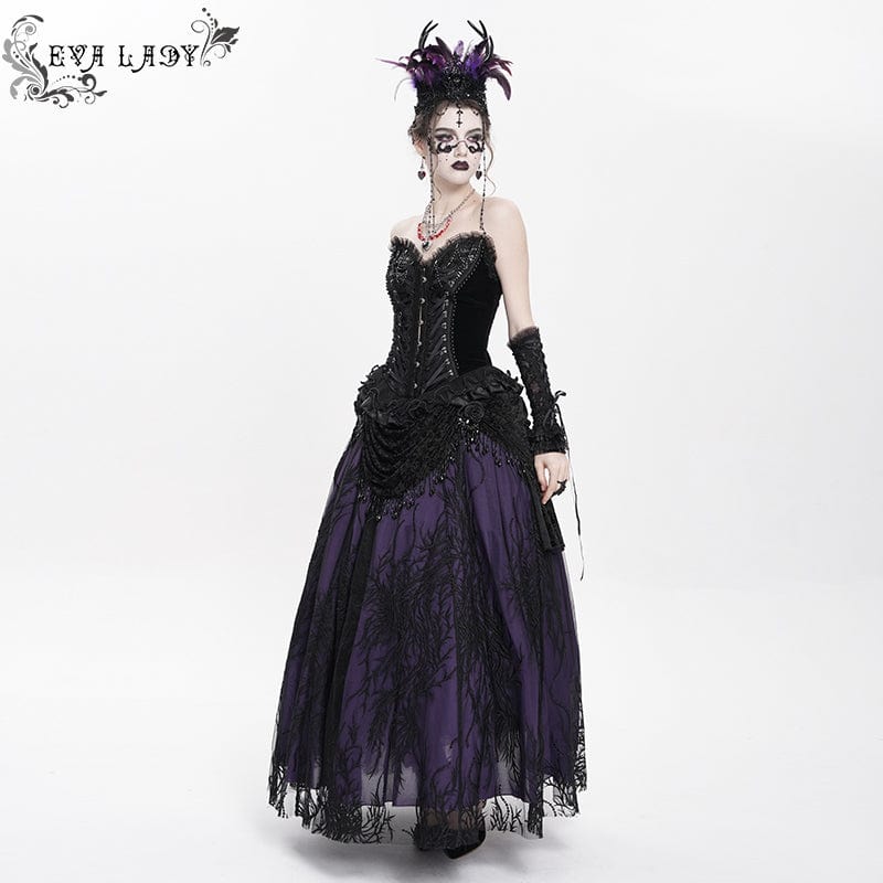 Women's Gothic Lace-up Beaded Lace Overbust Corset Black