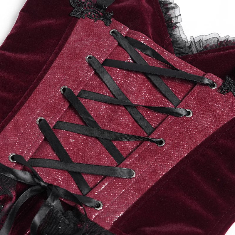 Women's Gothic Lace-up Beaded Lace Overbust Corset Red