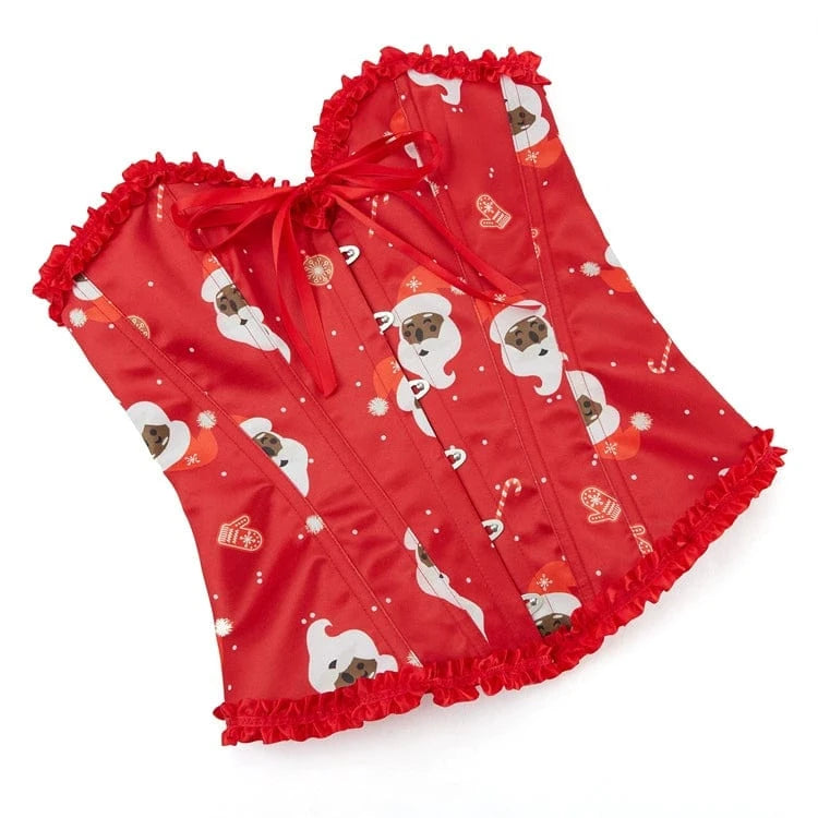 Women's Gothic Ruffled Christmas Lace-up Overbust Corset