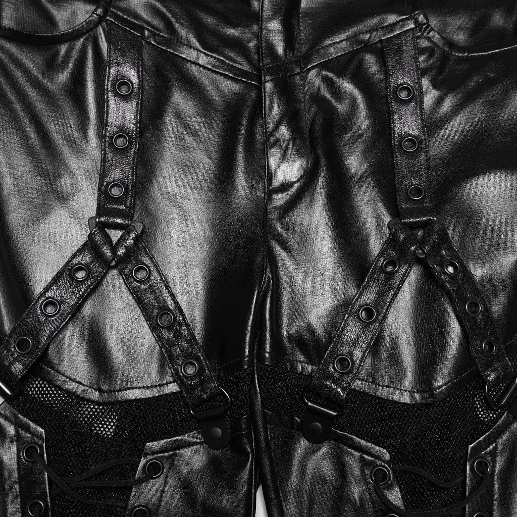 Step into bold cyberpunk style with these Women's Cyberpunk Eyelet Mesh Splice Leggings—a piece that blends punk goth drama with steampunk-inspired structure. Crafted with a stretchy blend of Polyamide and Elastane, they feature a slim fitted silhouette that hugs every curve, elevated by striking details: the legs showcase mesh splice panels paired with eyelet lace-up accents, while skull-shaped buttons add edgy punk rock flair.