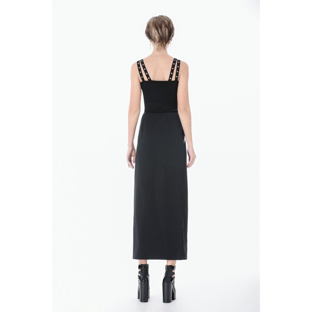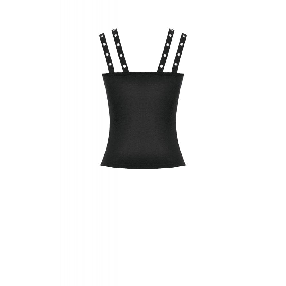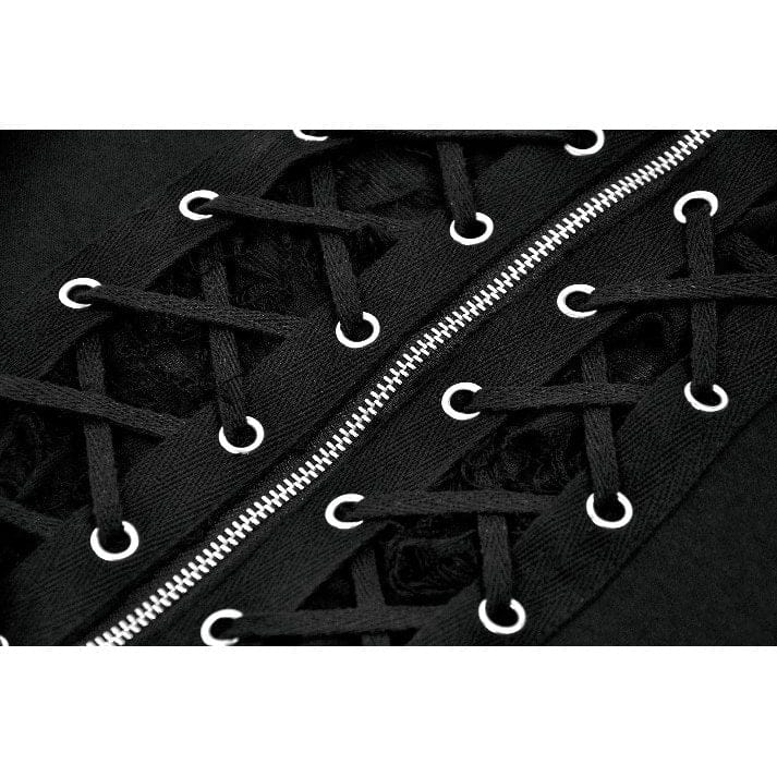 Women's Punk Eyelet Distressed Lace-up Zip Tank Top