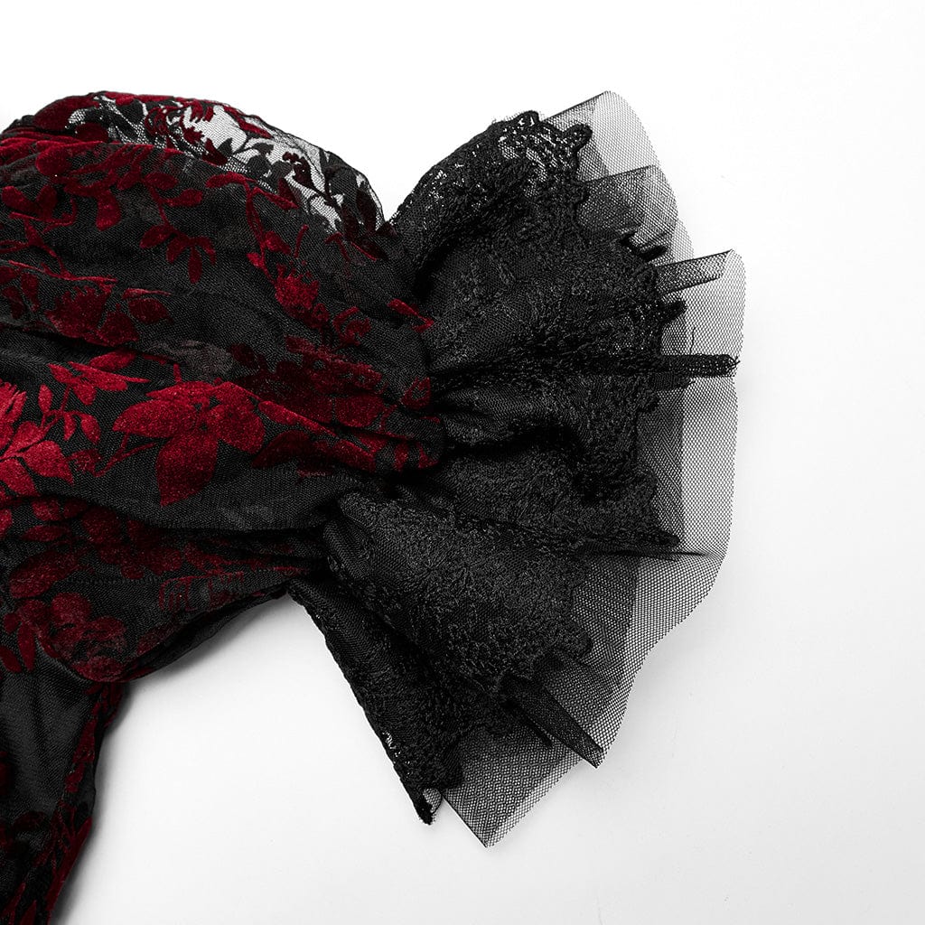 Women's Gothic Puff Sleeved Ruffles Lace Wedding Dress