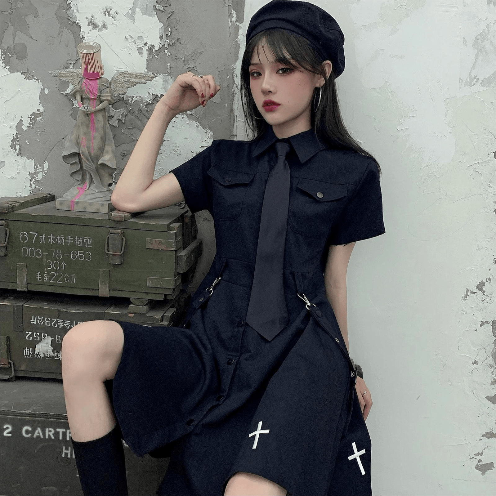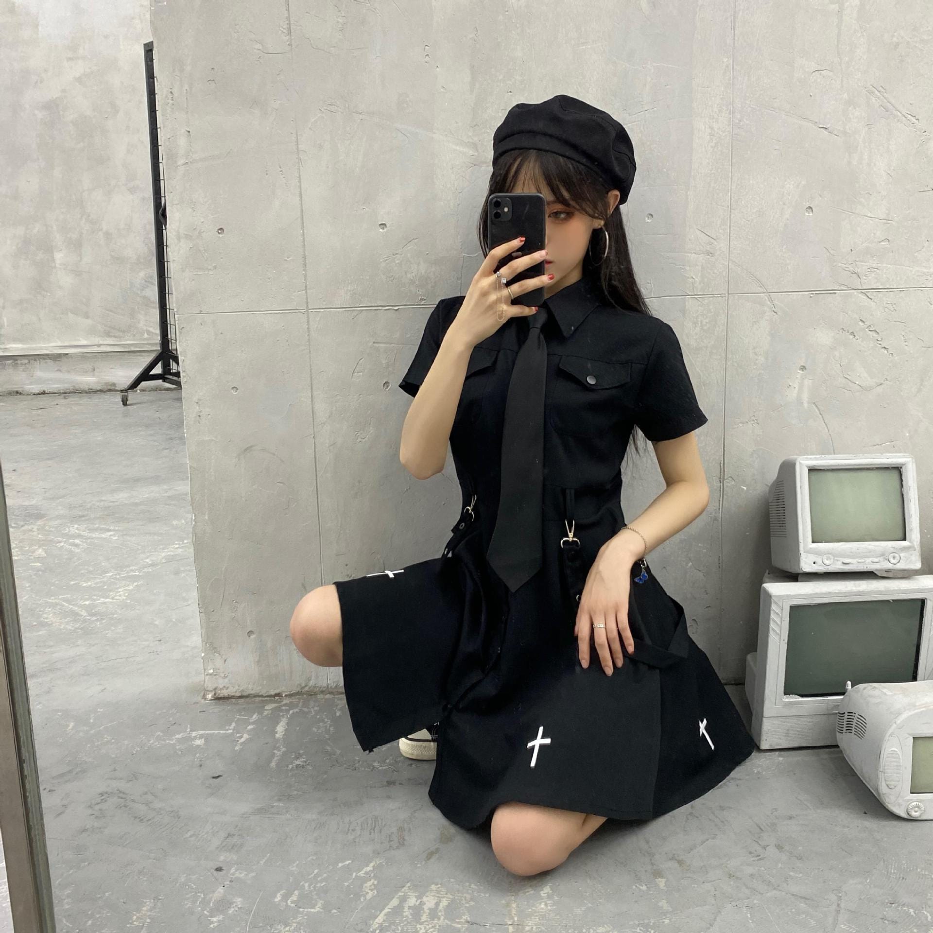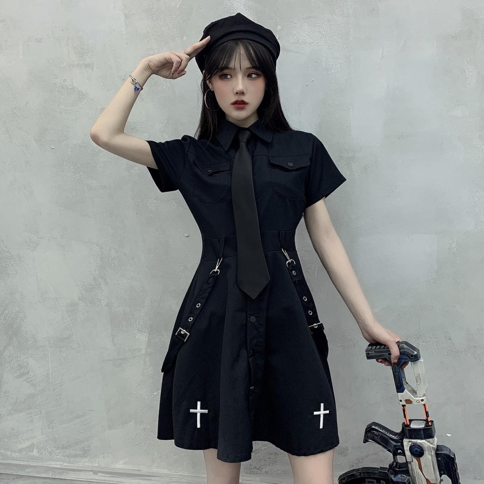 Women's Punk Turn-down Collar Homecoming Dress with Tie