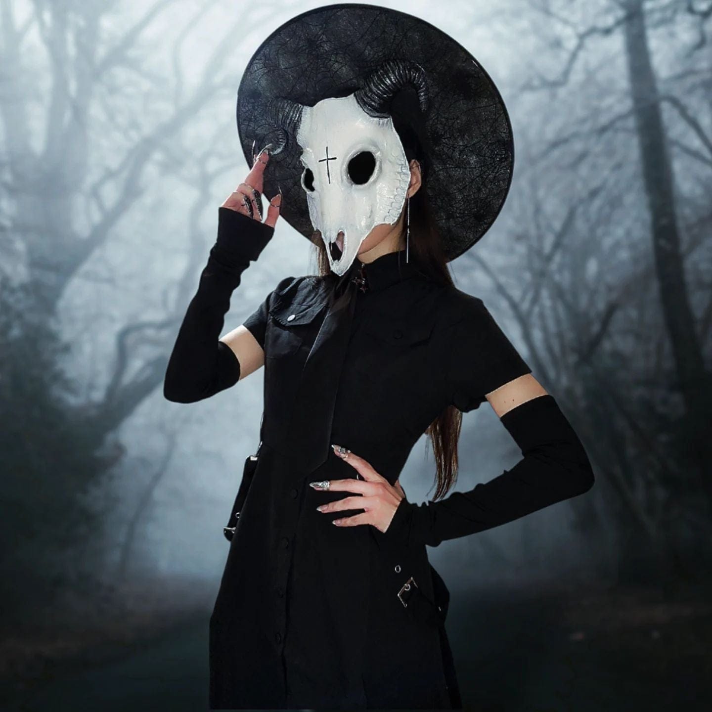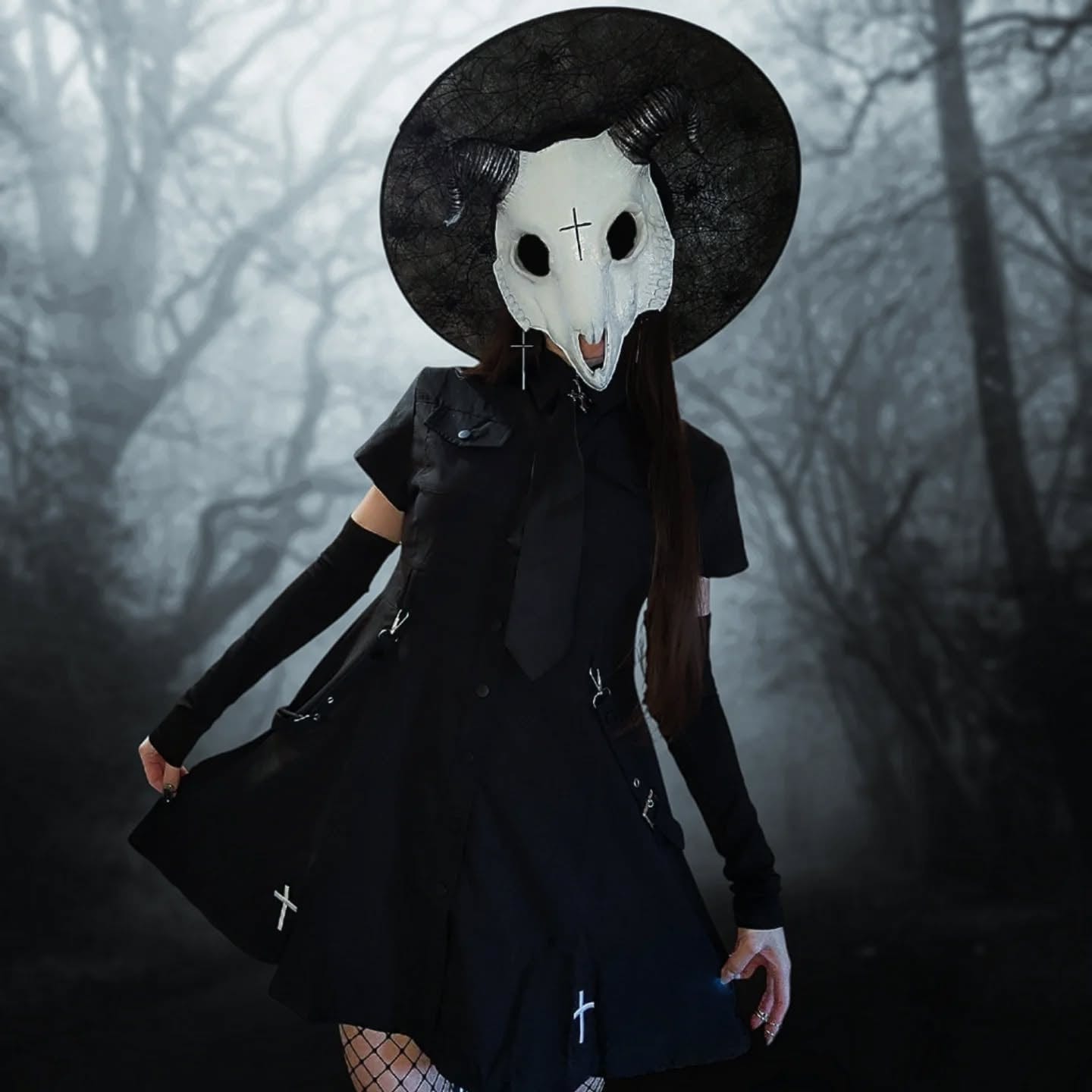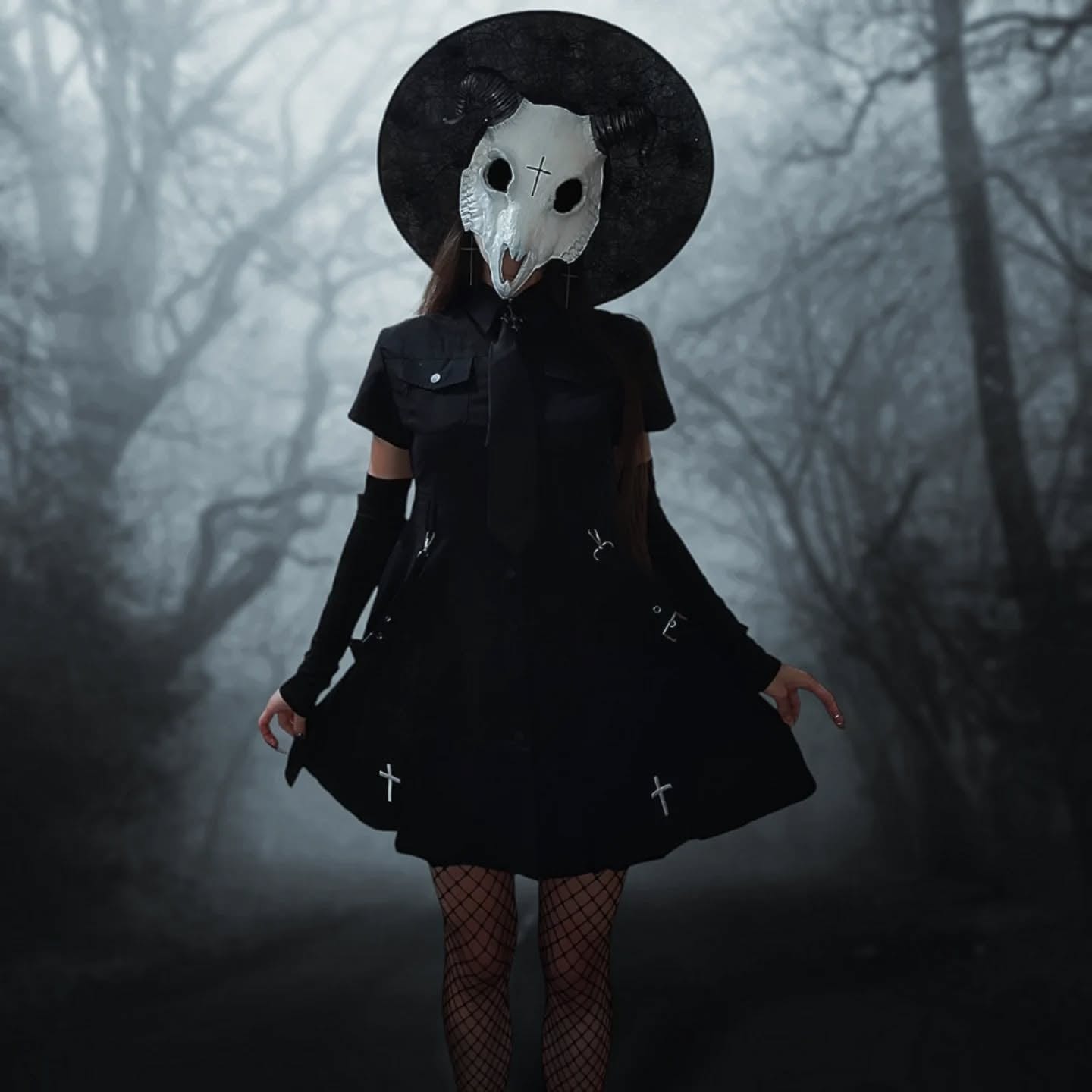 Women's Punk Turn-down Collar Homecoming Dress with Tie