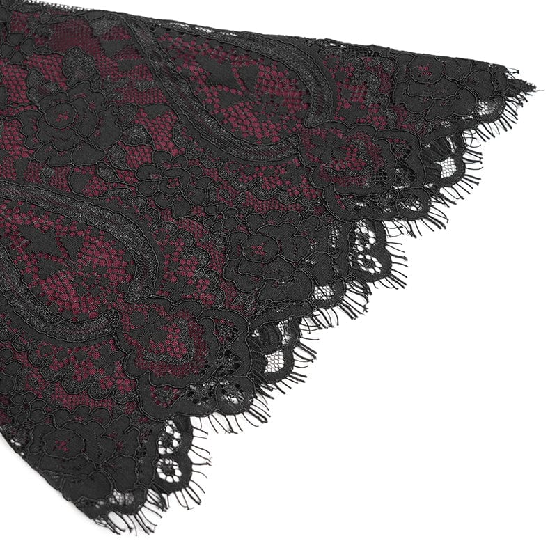 Women's Gothic Floral Embroidered Lace-up Square-cut Collar Lace Dress Red