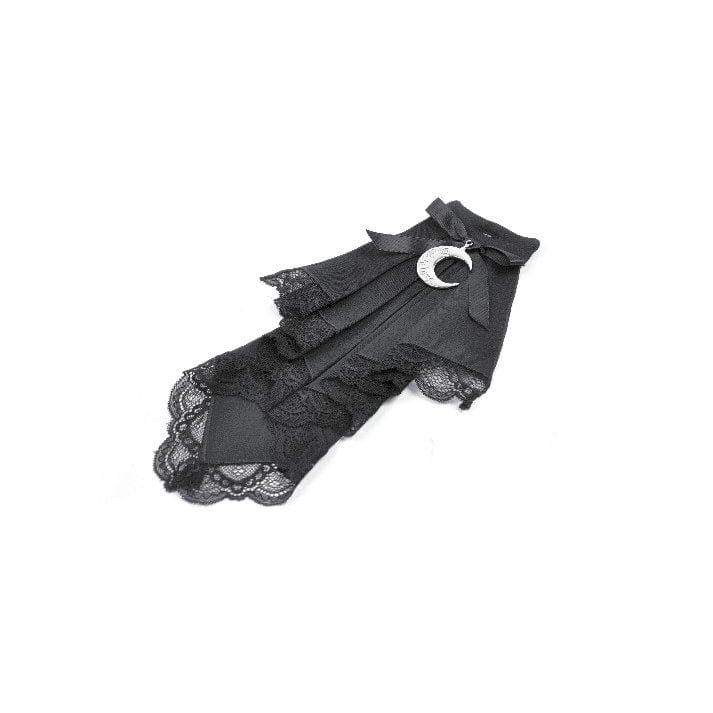 This dark-themed Lolita dress combines black-and-white stripes with black twill woven fabric, creating a layered look in a faux two-piece design. The neckline features a distinctive V-shaped cutout, wearable on its own or with the detachable neck bow for added versatility. The front placket has fully functional buttons for easy wear. The neck bow is crafted from black fabric, lace trim, a ribbon bow, and a moon pendant, adding intricate charm. Diagonal lace trim on both sides of the waist creates a slimming silhouette. The voluminous lantern sleeves are finished with lace-like trim at the cuffs. The hem is made from black fabric in a pleated design for enhanced depth and structure. A concealed side zipper adds convenience. Perfect for daily wear, parties, and ballroom events.