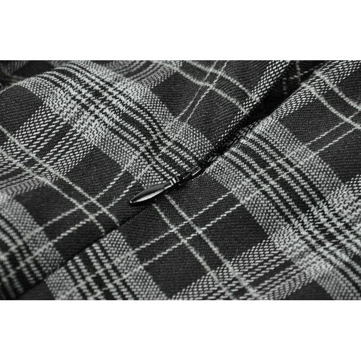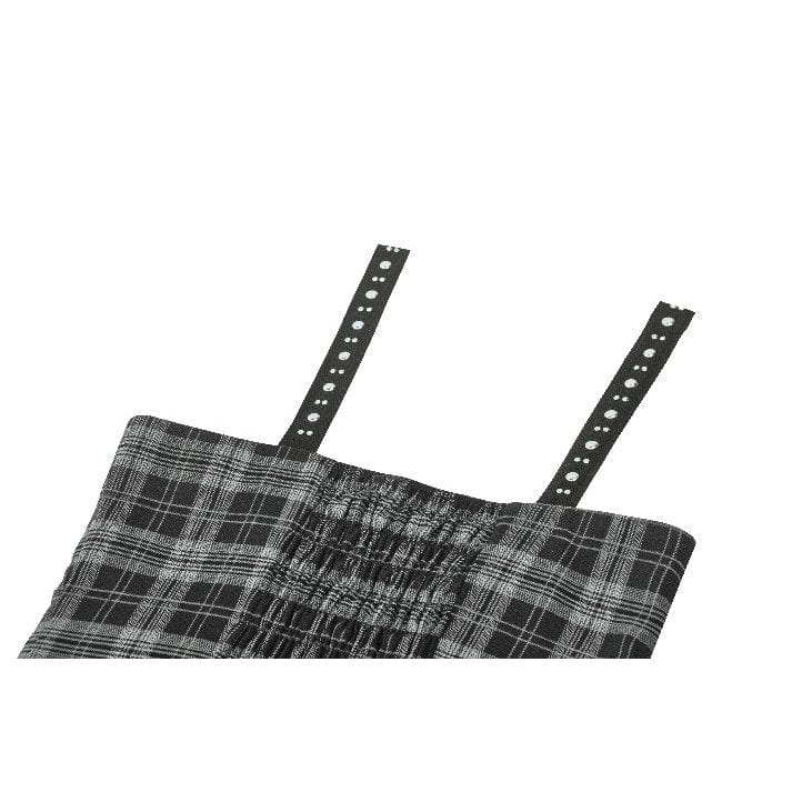 Women's Punk Layered Lace Hem Plaid Party Slip Dress