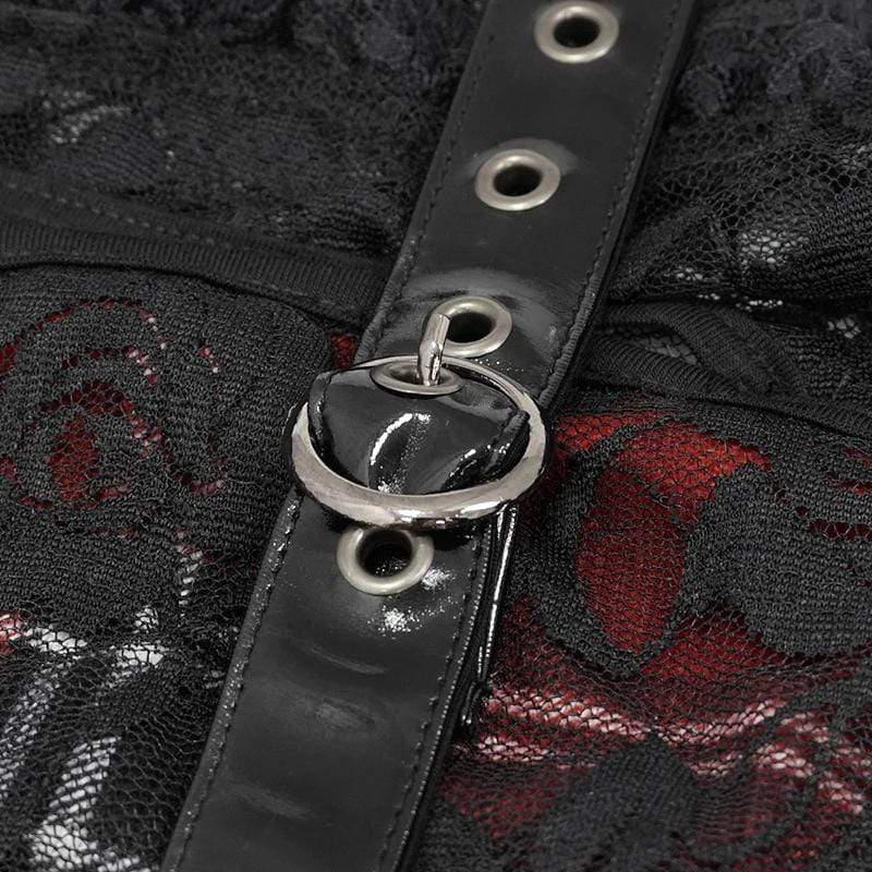Women's Gothic Lace Overlay Scottish Check Short Puffed Sleeve Tops