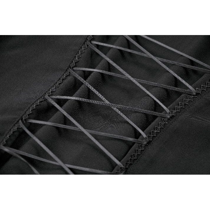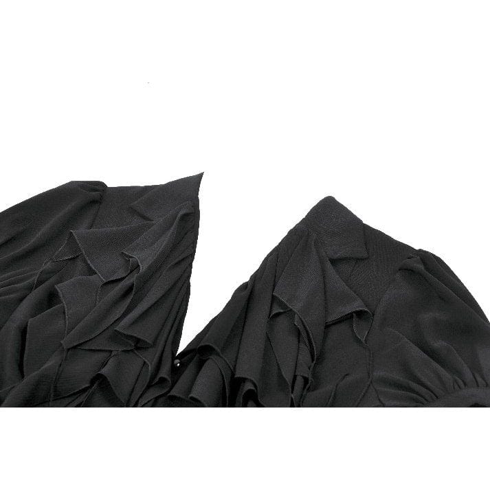 Women's Gothic Plunging Pleated Puff Short Sleeved Blouse