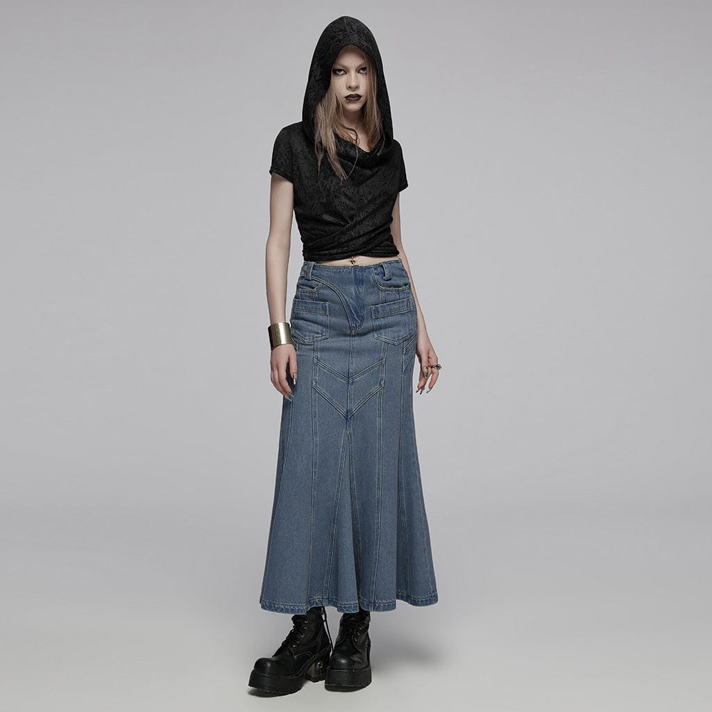 Women's Punk Cowl Neck Ruched Shirt with Hood