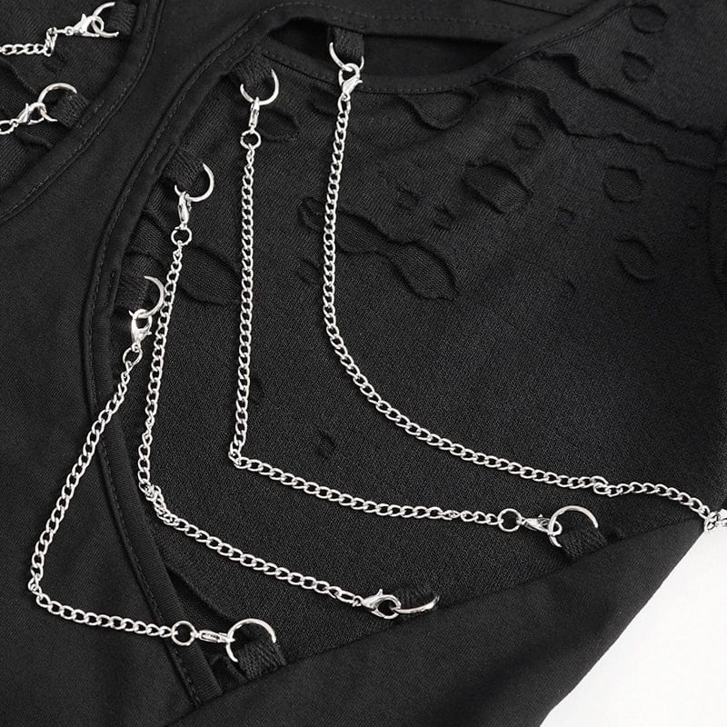 Women's Punk Cutout Ripped Chain Short Sleeved Tee
