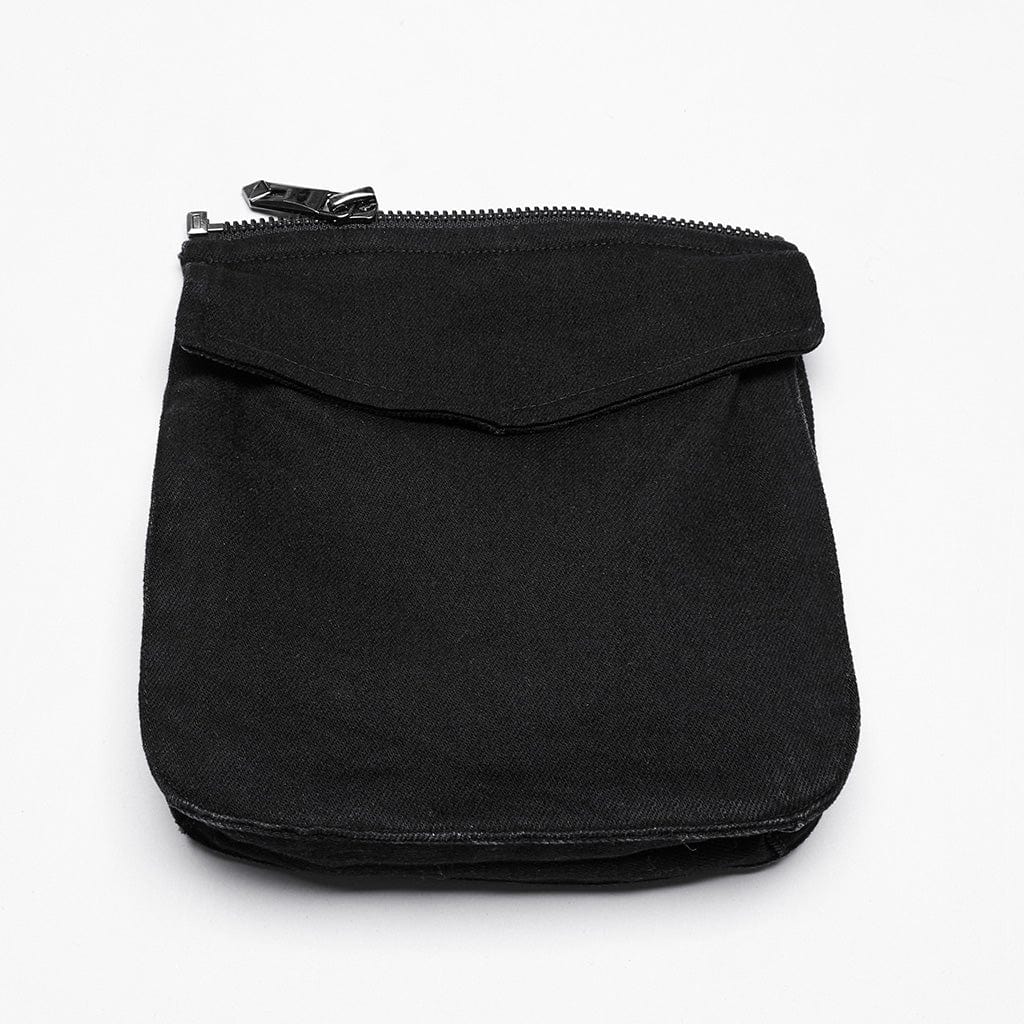 The shorts feature lace-up detailing on both sides, with metal eyelets that enhance the gothic punk aesthetic. This edgy design is complemented by the detachable pocket, which adds a practical and stylish touch to the look. The pocket attaches with sturdy zippers and can be easily removed for a cleaner, sleeker style when desired. The front of the shorts is finished with a frayed hem, adding a distressed, grunge vibe to the garment.