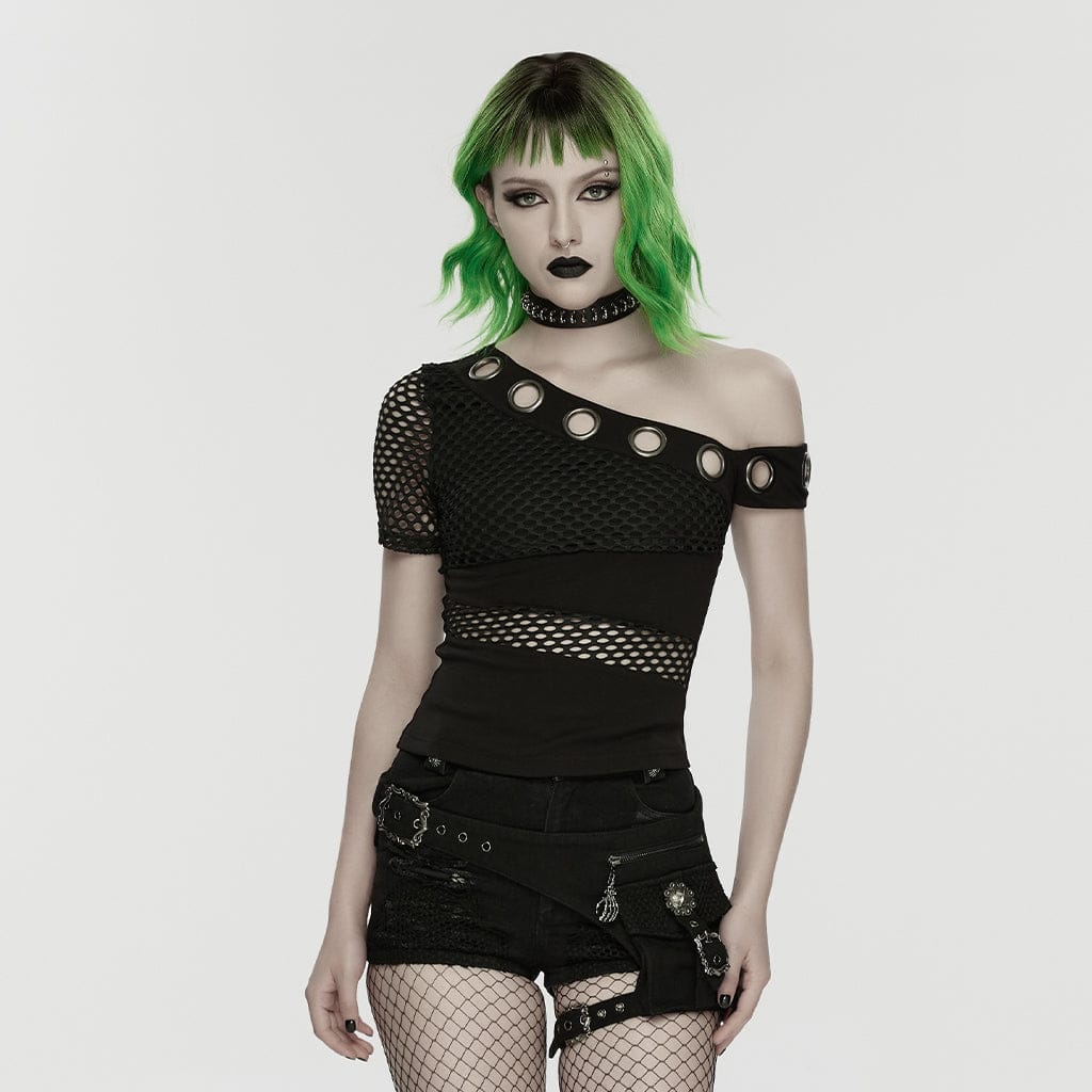 Women's Punk Tattered Shorts with detachable Leg bag