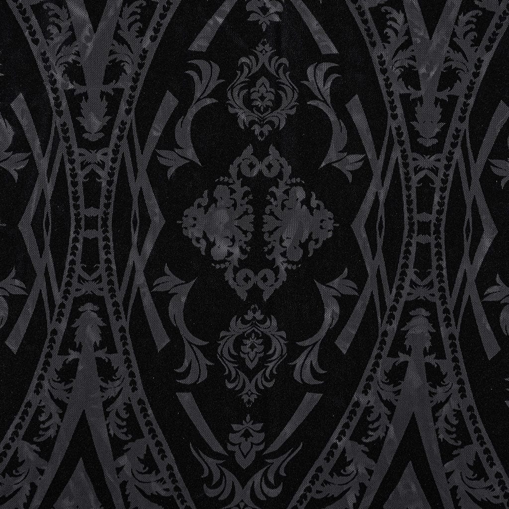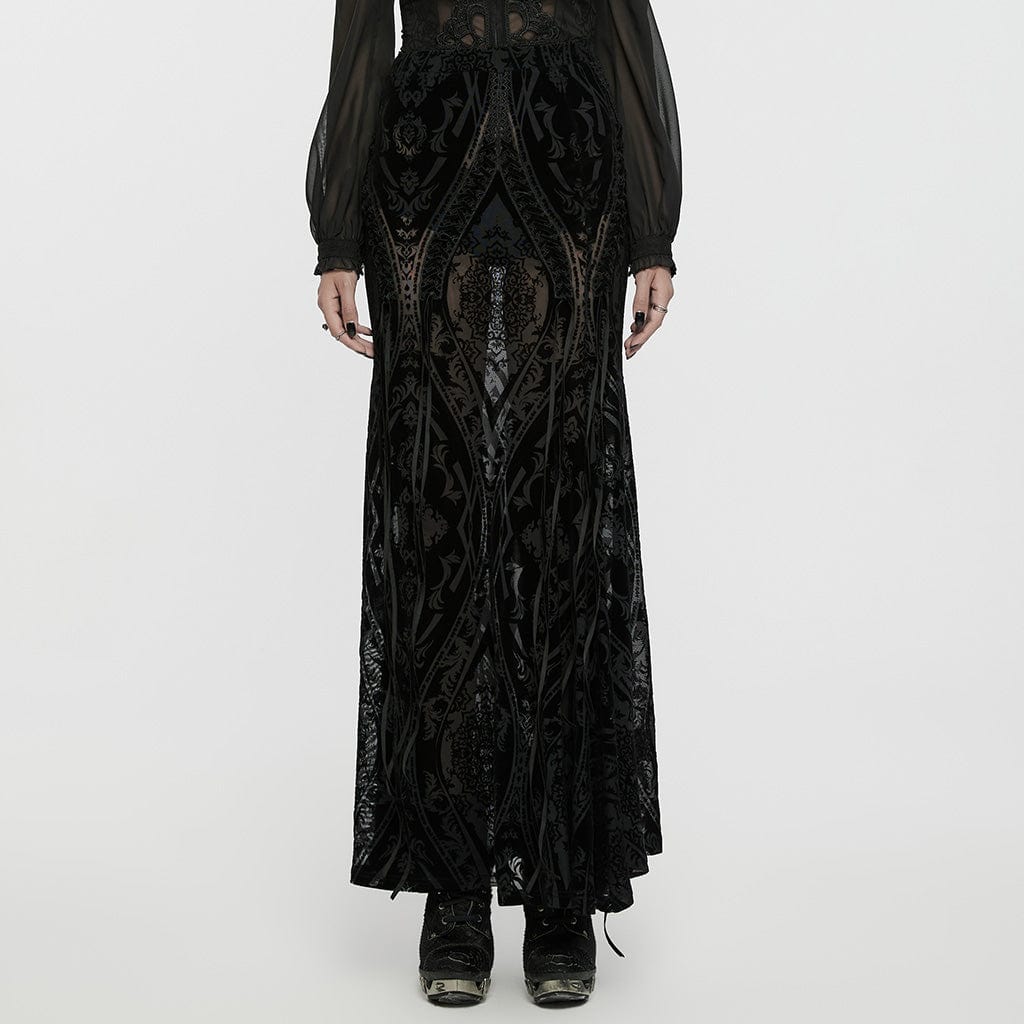 Whether paired with a corset top, a flowing blouse, or layered with other gothic pieces, this skirt is a versatile addition to your collection, offering endless styling possibilities. Embrace the allure of gothic fashion with this sheer flocked mesh skirt, a true statement piece that embodies dark romance and timeless elegance.