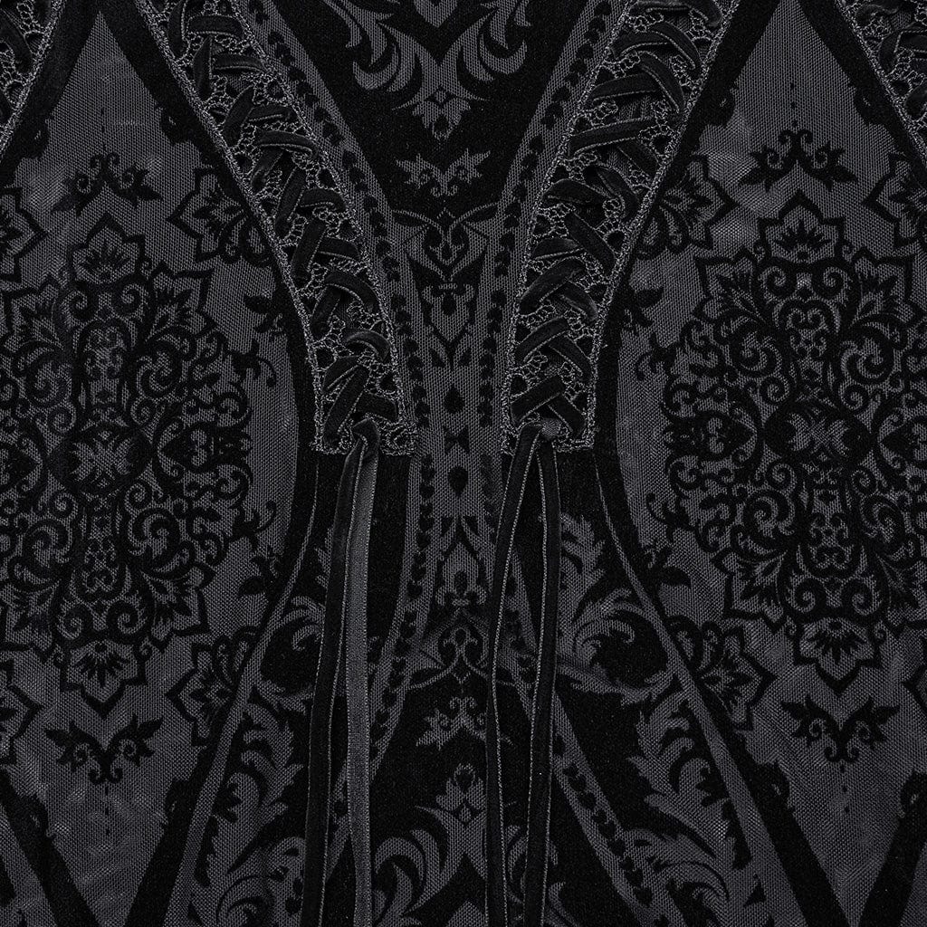 Women's Gothic Lace-up Sheer Flocked Mesh Skirt