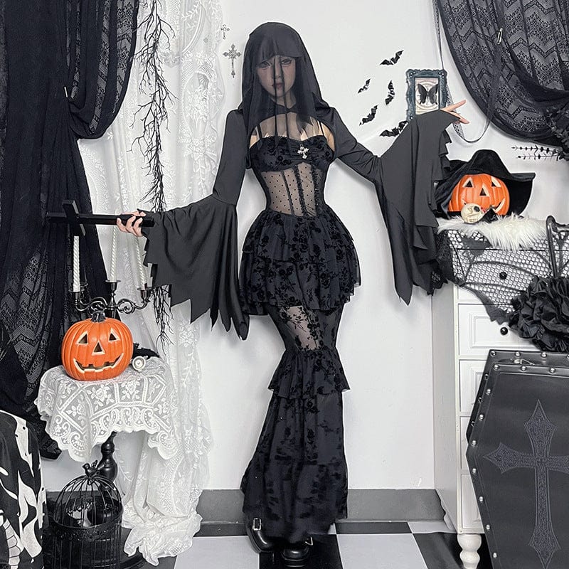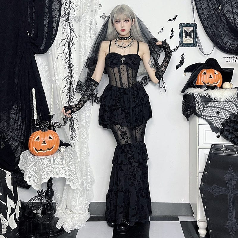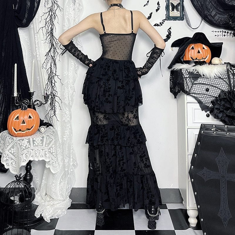 Women's Gothic Layered Lace Mesh Slip Dress